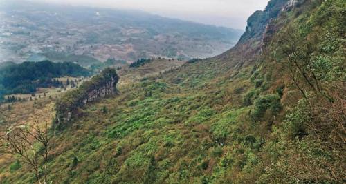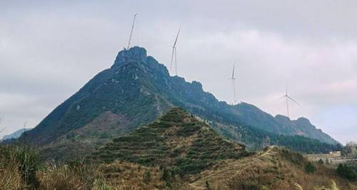 在南川山王坪西侧,有一处被驴友们称为“大鹏垭”的地方,山上共有两个遗存的古寨门遗址以及明代崇祯年间修建的龙泉寺遗址,遥望远方连绵的群山上,是一座座挺立的风车群,山上山下,全是绿叶茂密的树林及竹林一片浓绿。