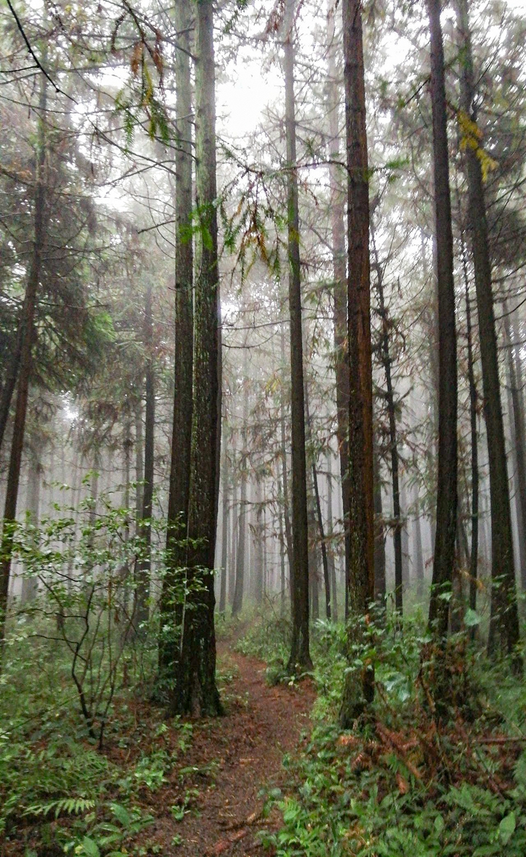 这里除了驴友,少有游客前往,道路被松针及绿草铺垫。