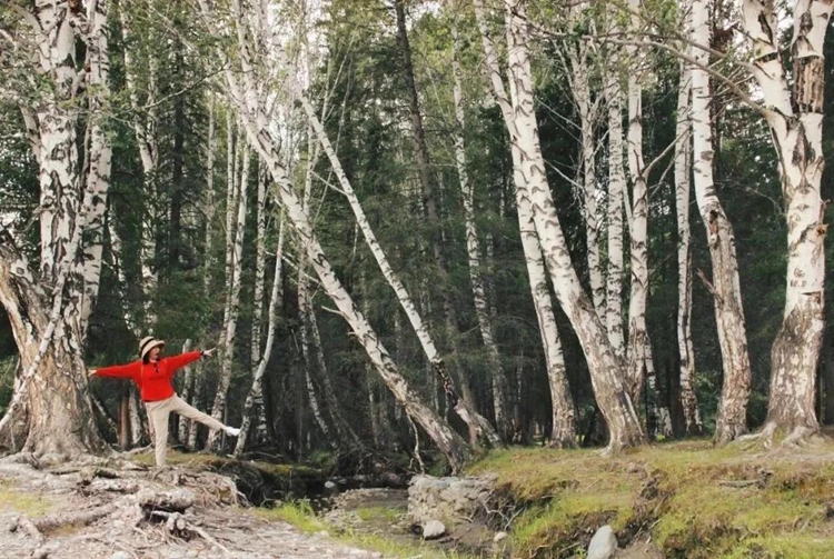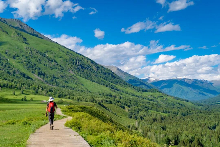 沿途路况良好,平缓海拔落差小于100,沿喀纳斯河沿岸徒步